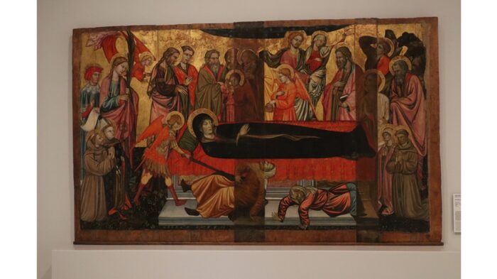 Il Medioevo e il Rinascimento i periodi d’oro delle arti abruzzesi. Il percorso è cronologico. Efficace il sistema di illuminazione, chiare le didascalie. Al primo piano in 14 sale ci si imbatte in autentici capolavori. Come lo stupendo trittico dipinto dal Maestro del Trittico di Beffi a inizio ‘400 accanto sua grande “Dormitio Virginis” acquistata dal Munda tre anni fa per arrivare a due San Sebastiano a fianco a fianco scolpiti tra fine ‘4000 e primo ’500 da Silvestro dell’Aquila e da Saturnino Gatti e al primo ‘500.