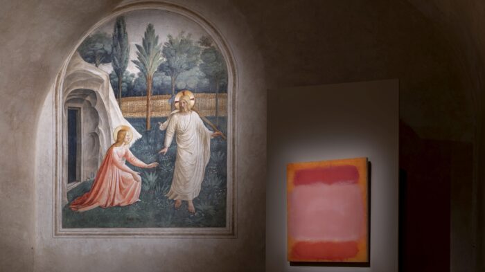 Con la mostra “Rothko a Firenze”, reduce dal successo di quella sul Beato Angelico con 250mila visitatori, la Fondazione raccoglie al piano nobile 68 opere tra dipinti e alcuni disegni. Li accompagnano due tappe esterne: nel vestibolo, appunto, e cinque piccoli dipinti accostati ad affreschi del Beato Angelico in altrettante celle nel Museo di San Marco e dove risulta strepitosa la combinazione cromatica delle sue astrazioni con le figure serene e l’impianto meditativo del pittore rinascimentale.